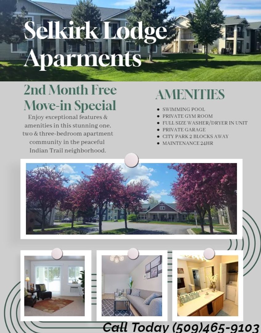 Offering exceptional amenities, a convenient location and top-notch apartment rentals. Selkirk Lodge in Spokane is an ideal apartment community you will be proud to call home. We know you have a lot of choices about where to live, but you will not find any better than Selkirk Lodge! When you move into Selkirk, you will experience a serene, park like setting with beautiful landscaping with the convenience of close shopping and dining and bus routes. We have 1, 2 and 3 bedrooms in size. And don’t forget pets are welcome! We are committed to providing superior customer service in a beautiful setting. Come see your new home today!